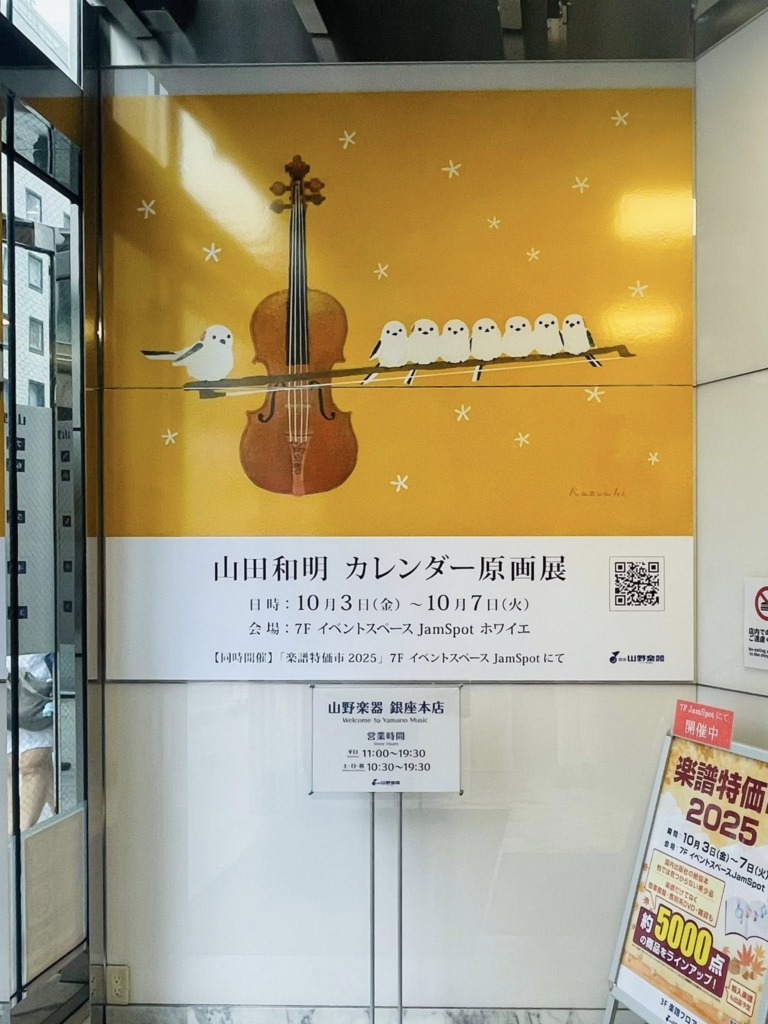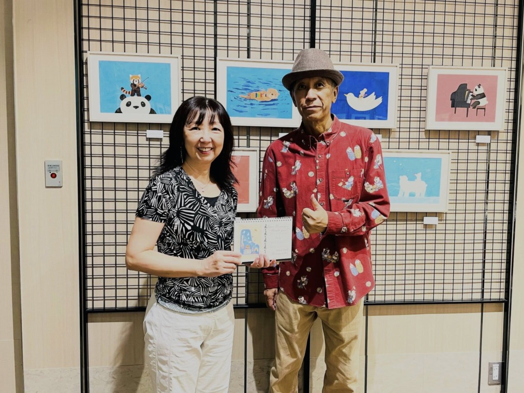 Post Share Hatena RSS Pin it イラストレーターで絵本作家の山田和明さんの「カレンダー原画展」にお伺いしました。 山田さんとは月一のテニスでもご一緒させて頂いてお世話になっています。 音楽をテーマにした素敵な絵の数々に、思わず見入ってしまいため息が出るほど! 可愛い動物と音楽のコラボの作品はとても癒させるものばかりで、どの絵も素敵でした。 特に印象的だった、ラッコがお腹の上で鉄琴を弾いている絵と一緒に写真を撮って頂きました Tシャツとカレンダーも購入(^^)。 またテニスでご一緒できる時を楽しみにしています ART & DESIGN コメント: 0 Post Share Hatena RSS Pin it Journey、TOTO、BOSTONのマニアックなセッション 9/7のJazzライブの写真 関連記事 小村雪岱展@日比谷&日本橋 「くまモン」の名刺 ルーブル美術館の夜「ダ・ヴィンチ没後500年展」の映画 ユーミンの展覧会「YUMING MUSEUM」 表参道の美しいライトアップ❣️ 昔の横浜駅の写真 「ちふれ」の看板 Wink鈴木早智子コラボカフェイベント@渋谷 コメント コメント ( 0 ) トラックバック ( 0 ) この記事へのコメントはありません。 この記事へのトラックバックはありません。 トラックバック URL 返信をキャンセルする。 名前 ( 必須 ) E-MAIL ( 必須 ) ※ 公開されません URL Δ