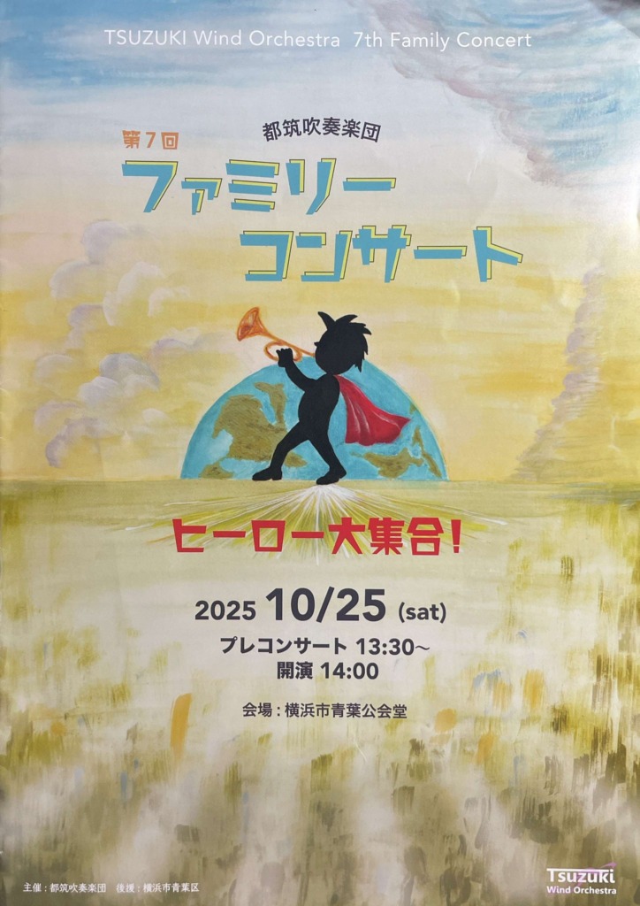 N社勤務時代の研修でご一緒していた友人が団長を務める「都筑吹奏楽団」のファミリーコンサートに行ってきました(^^)。
