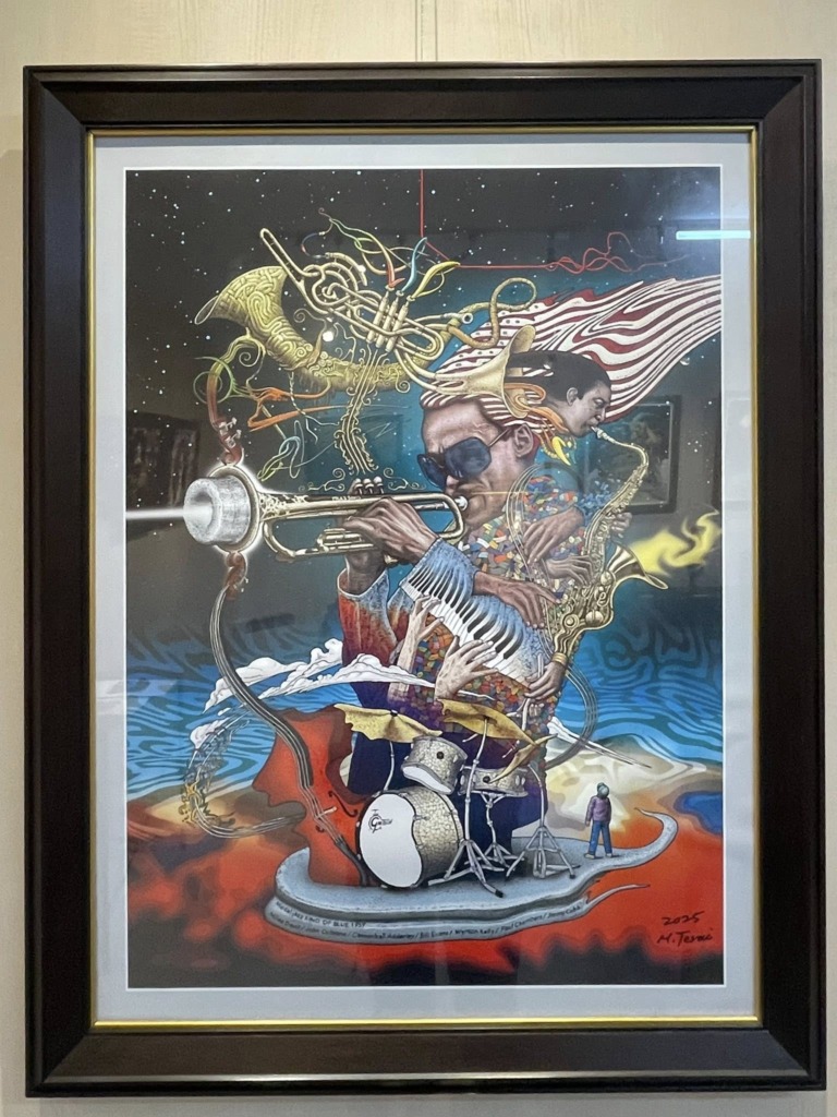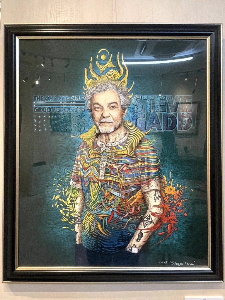 作家の寺井ミツグさんご本人から作品の解説を伺い、一緒に写真まで撮っていただくという贅沢なひととき。ご自身でドラムも演奏されるそうです。