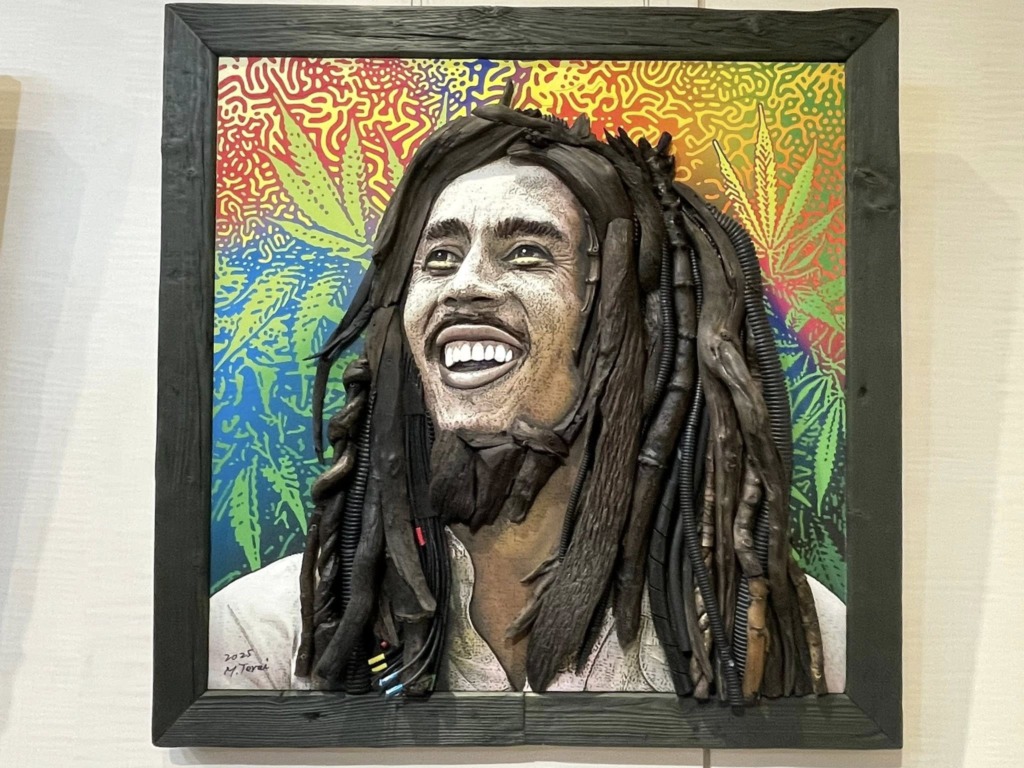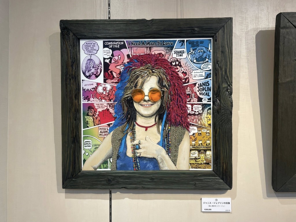 中でも、廃材を画面に貼り付けた立体的な一点ものの作品(ボブ・マーリーやジャニスなど)は圧巻