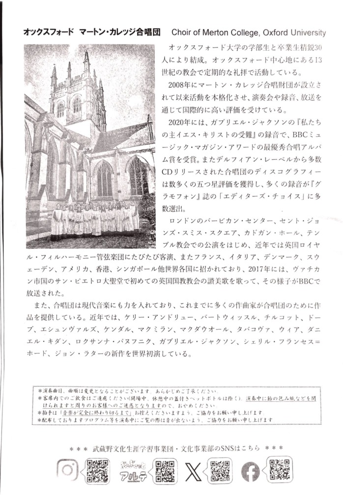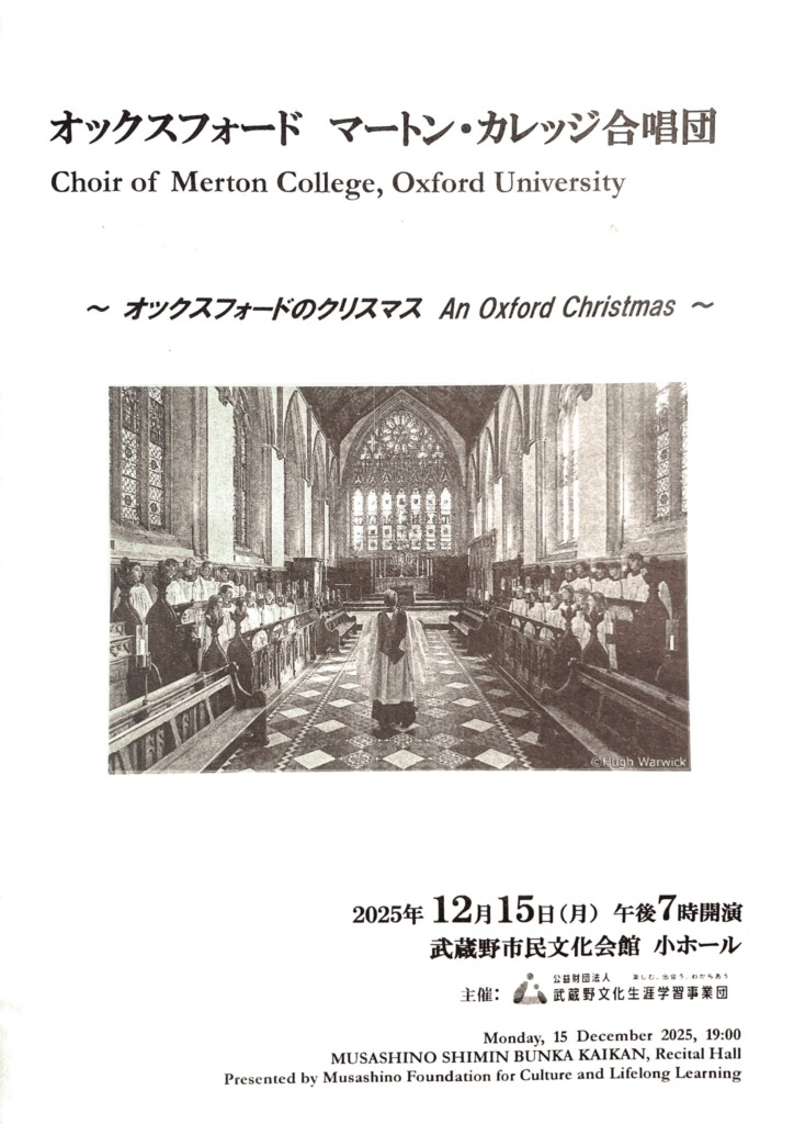 「オックスフォード・マートン・カレッジ合唱団」を聴いてきました。