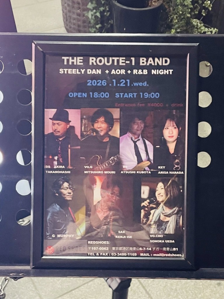 The Route-One Bandのライブを、Red Shoesにて楽しんできました。