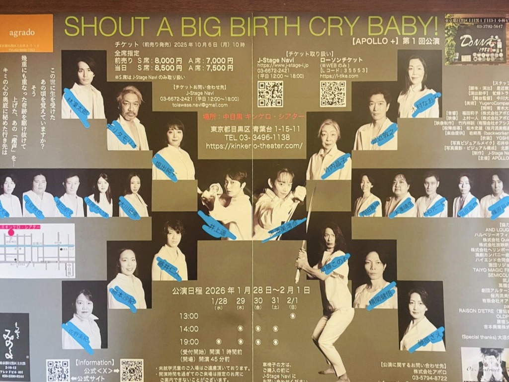 高校時代の友人で、俳優・映画監督の 竹内晶子さん が出演する舞台「Shout A Big Birth Cry Baby」 を、友人たちと観てきました![]()