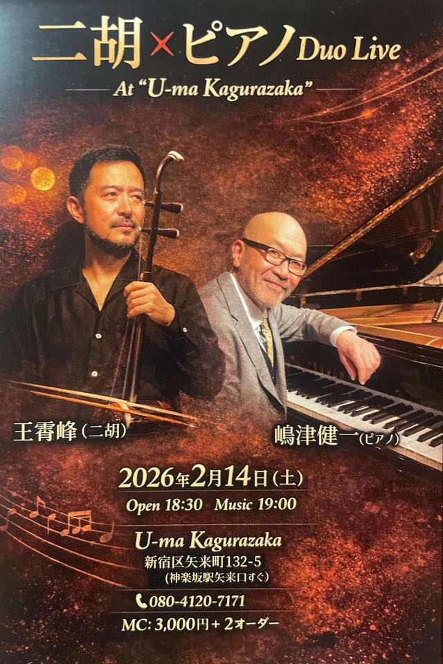私のジャズピアノの師匠、嶋津健一さんと、二胡奏者の王霄峰(ワンシャオフォン)さんのDuoライブへ伺いました。