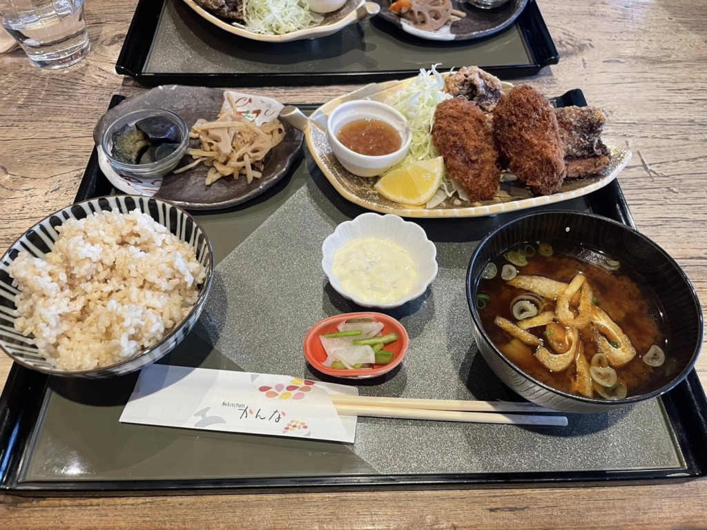 かき氷は頼みませんでしたが、和定食(私はカキフライと鶏の唐揚げ定食)は美味しくいただきました![]()